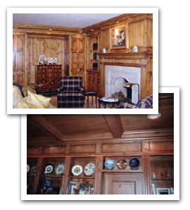 Yes, we build custom furniture of all types. We can create anything your imagination designs, from rustic to elegant. Walls and ceilings are also one of our many specialties. With many different combinations of wood and finishes to work with, you can create stunning wall and ceiling treatments such as these.