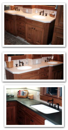 Nothing quite accentuates the beauty of your cabinets like Corian counter tops. The molded sinks provides seamless bonding with the counter top, and Corian makes it so easy to keep it looking great for many years.